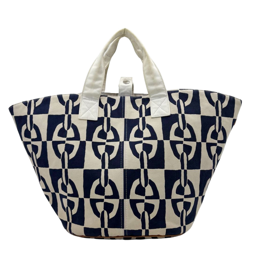 HERMES エルメス トートバッグ パニエド プラージュPM シェーヌダンクル柄 キャンバス アイボリー/ネイビー