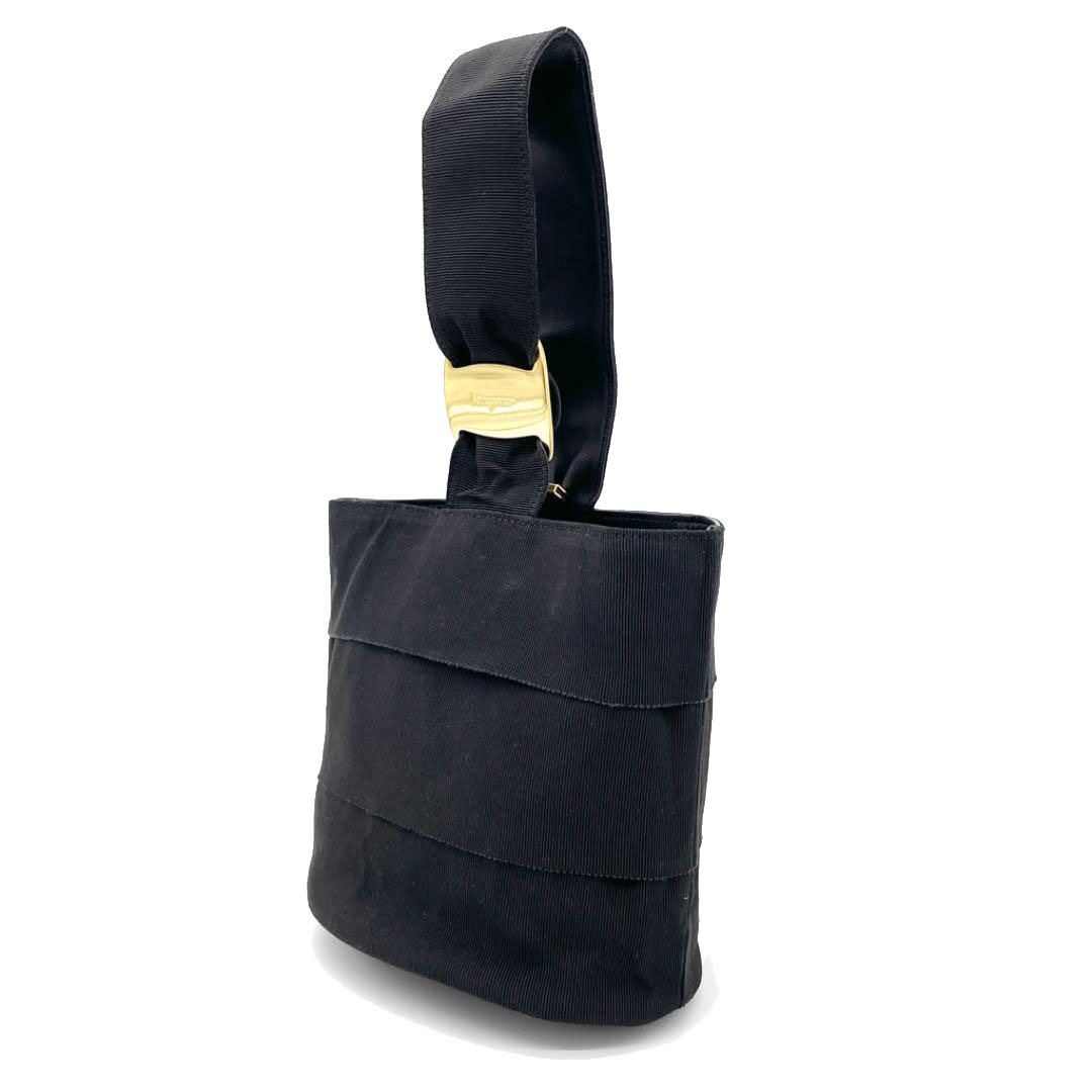 Salvatore Ferragamo サルヴァトーレフェラガモ ヴァラ ティアード ワンハンドル ハンドバッグ キャンバス ブラ...