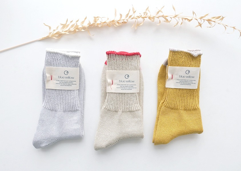 【blue willow(ブルーウィロー)*コットンリネン配色ソックス(3色)】