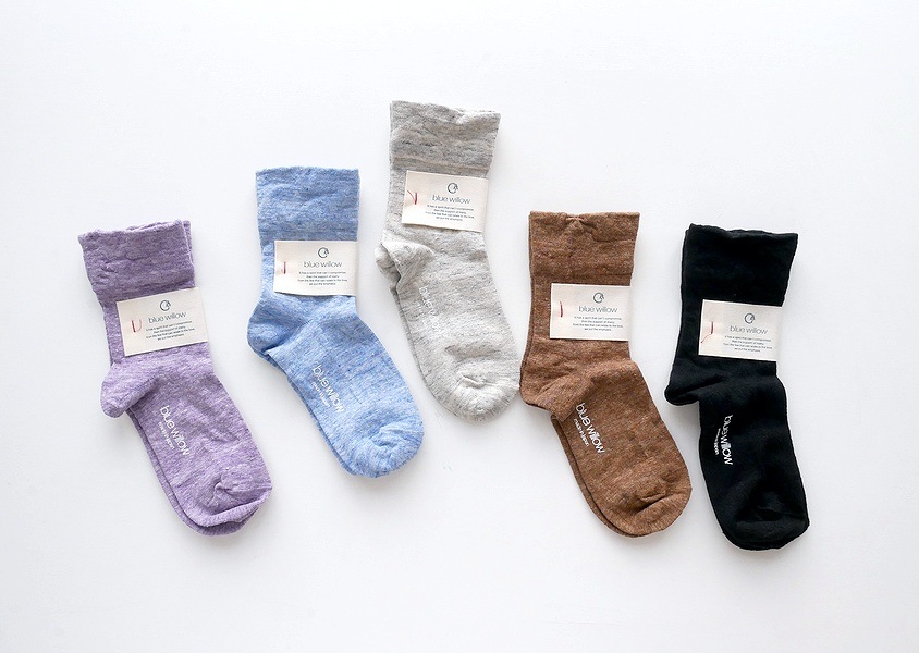 【blue willow(ブルーウィロー)*リネン無地ソックス(5色)】