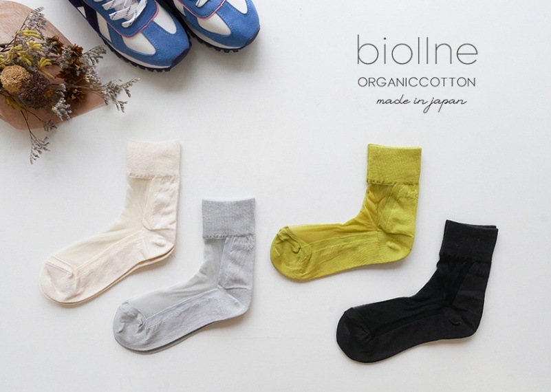 【biollne(ビオルネ)*シアー切り替えミドル丈ソックス(4色)】
