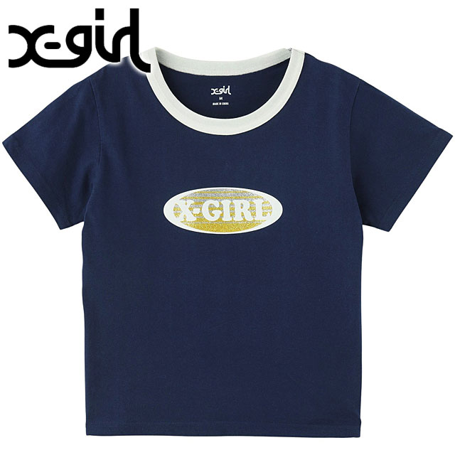 エックスガール X-girl レディース グリッターサークル バックグラウンド フェイスロゴ ショートスリーブ ベイビーTシャツ ...