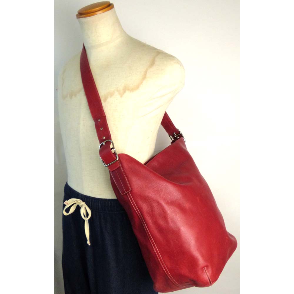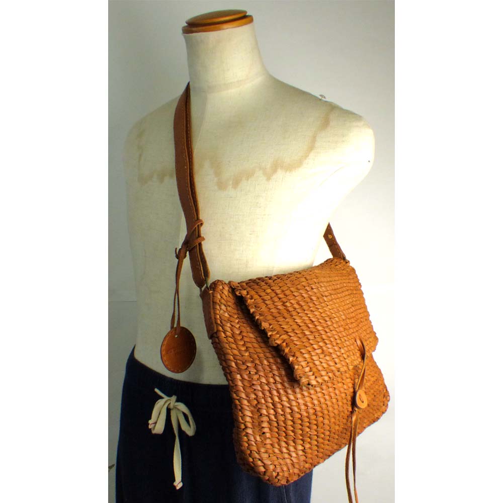 インドネシア製 本革レザーショルダーバッグ【中古】