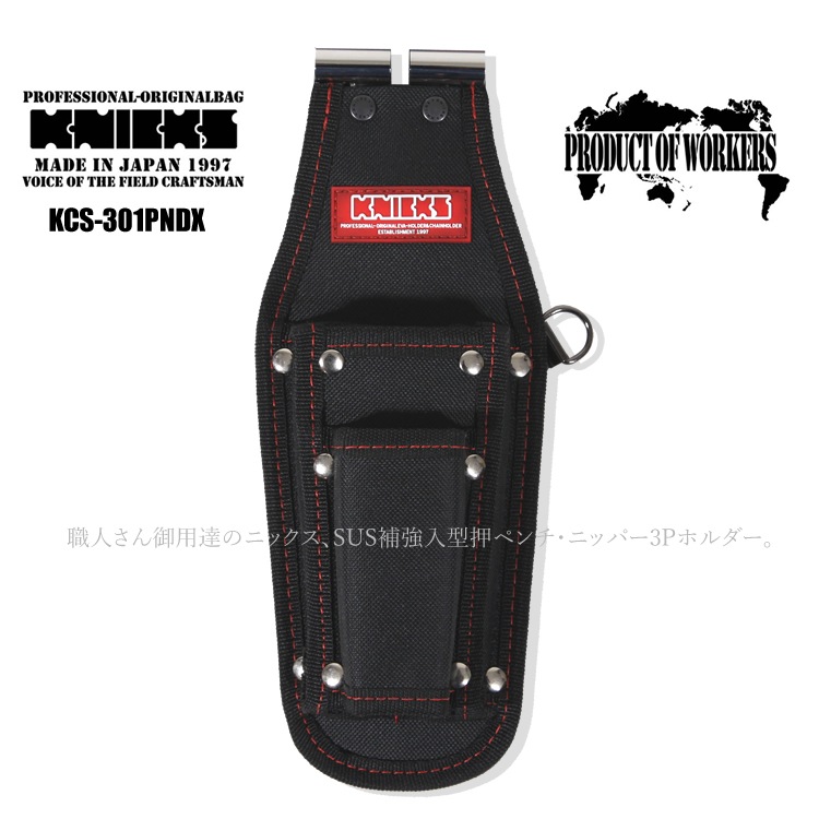 送料無料 ニックス 腰袋 工具差し KNICKS 型押 ペンチ ニッパー 3Pホルダー SUS補強入 コーデュラ CORDURA...