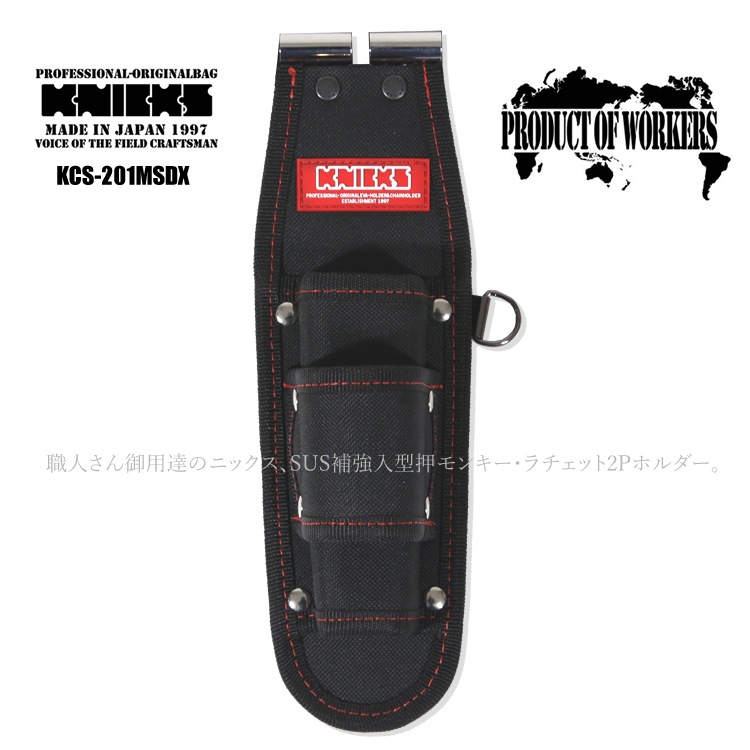 送料無料 ニックス 腰袋 工具差し KNICKS 型押 モンキー ラチェット 2Pホルダー SUS補強入 コーデュラ CORDU...