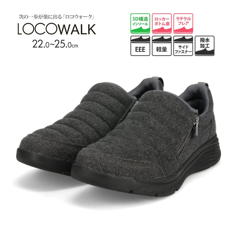 ウォーキングシューズ レディース 3e 幅広 撥水 サイドファスナー 黒 ローカット 運動靴 キャンプシューズ ロコモ予防 グレー...