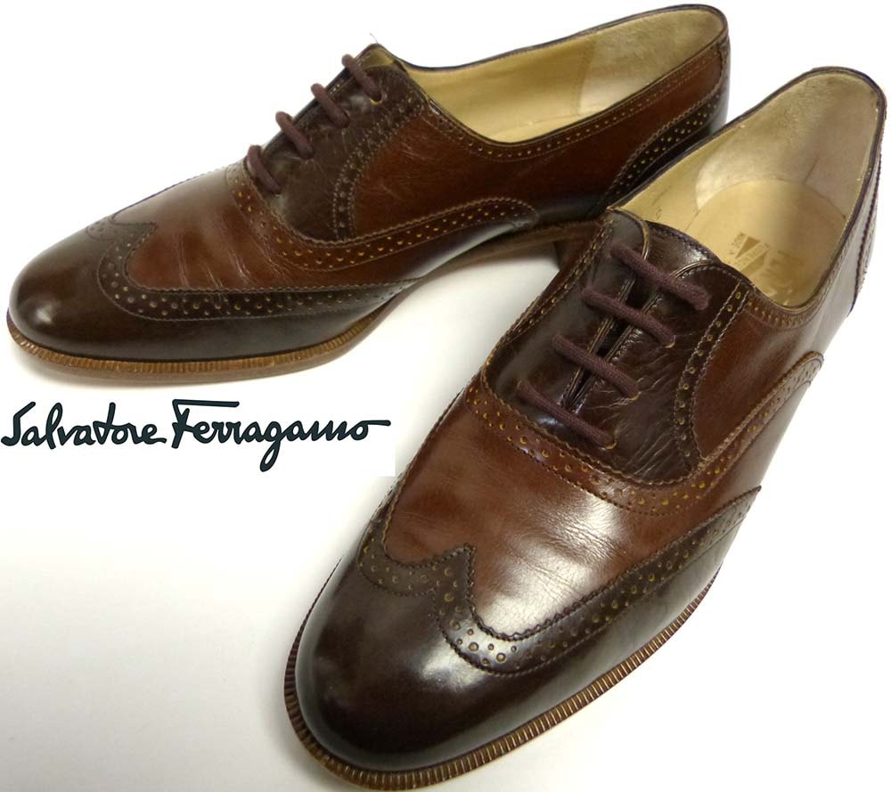 イタリア製 サルヴァトーレフェラガモ Salvatore Ferragamo 2トーンウイングチップシューズ 5 1/2B(22-...