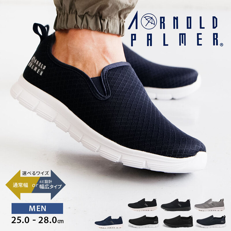 アーノルドパーマー スリッポン メンズ 幅広 屈曲性 軽量 ランニングシューズ ウォーキング メッシュ 通気性 シンプル ブラック...