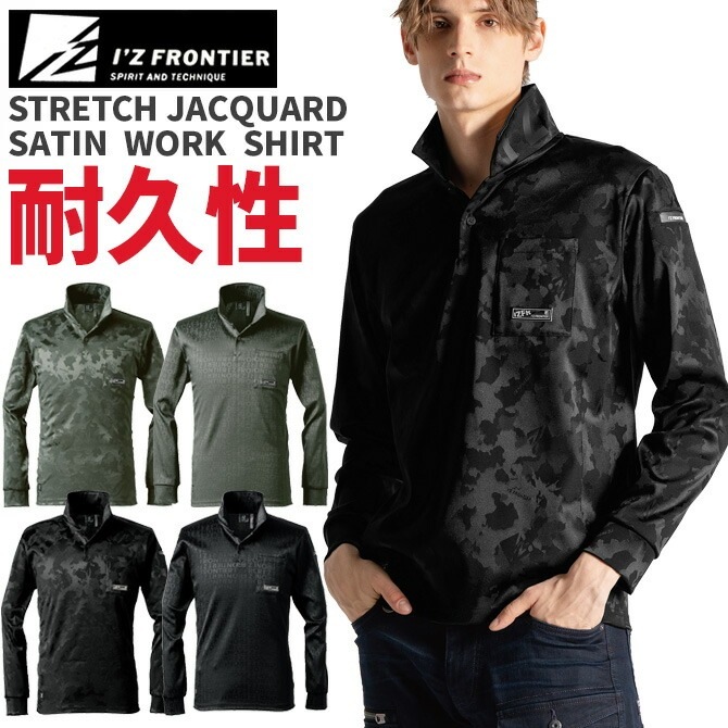 アイズフロンティア 2025年 秋冬 新作 ストレッチジャガードワークシャツ 長袖 IZ-8011 I\'Z FRONTIER オ...