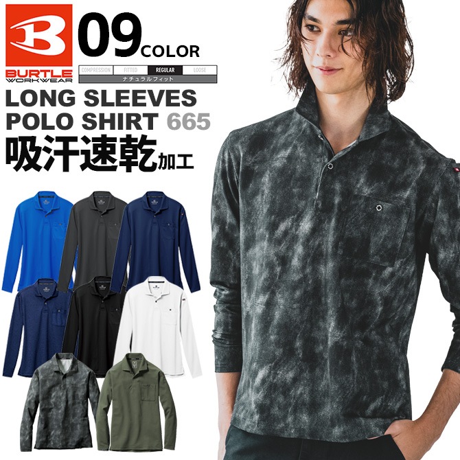 【1点までネコポス可】ドライメッシュ長袖ポロシャツ BURTLE(バートル) 665 オールシーズン メンズ レディース 鹿の子 ...