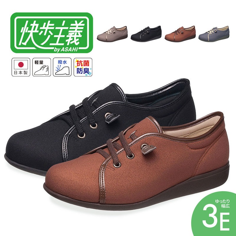 快歩主義 レディース スリッポン スニーカー 幅広 3E 軽量 抗菌 防臭 撥水加工 黒 ブラック ベージュ 赤 レッド 青 ブル...
