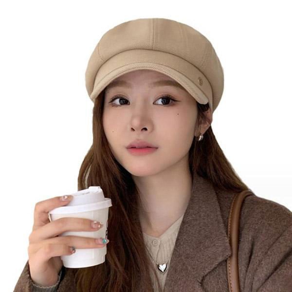 レディース キャスケット シンプルデザイン フリーサイズ 2カラー レトロ雰囲気 持ちやすいツバ アクセント 丸みのあるふんわりシ...