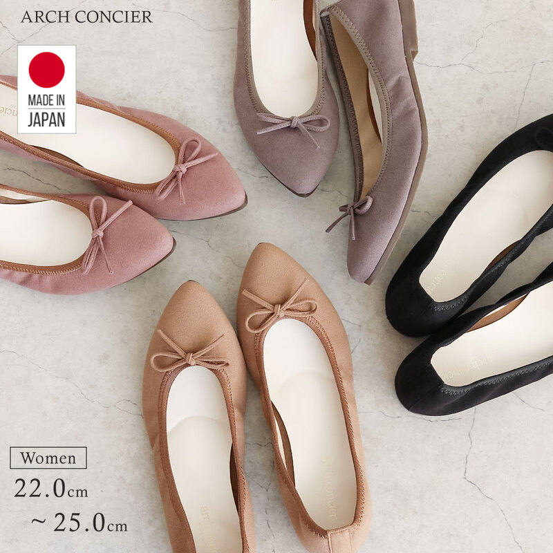 パンプス ぺたんこ 日本製 フラットシューズ レディース ローヒール バレエシューズ コンフォート リボン アーチコンシェル 黒 ...