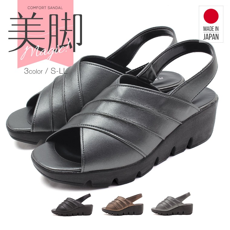 サンダル レディース 疲れない 日本製 アンクルストラップ ウェッジソール 美脚 軽量 歩きやすい 履きやすい 疲れにくい 滑りに...