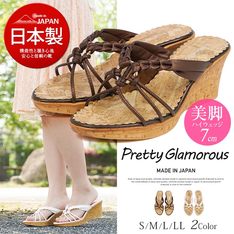 Pretty Glamorous 日本製 サンダル ミュール レディース 歩きやすい サンダル ウェッジ レディース 厚底 歩きや...