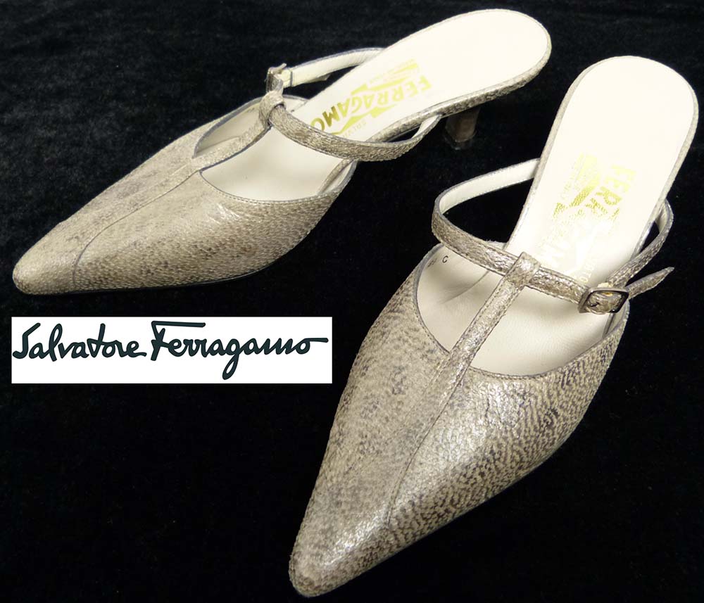 イタリア製 Salvatore Ferragamo サルヴァトーレ フェラガモ 型押しレザー パンプス 6 1/2C(23.5-2...