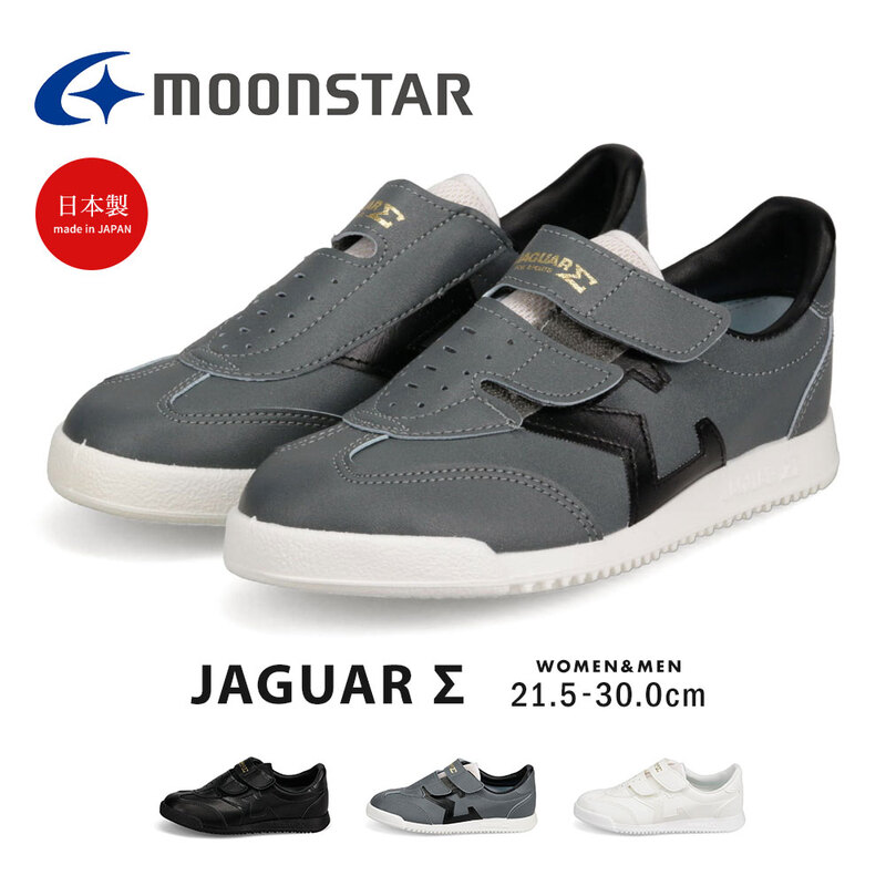 ムーンスター スニーカー レディース メンズ 軽量 白 黒 ひもなし 面ファスナー 日本製 ブラック ホワイト グレー ジャガーシ...