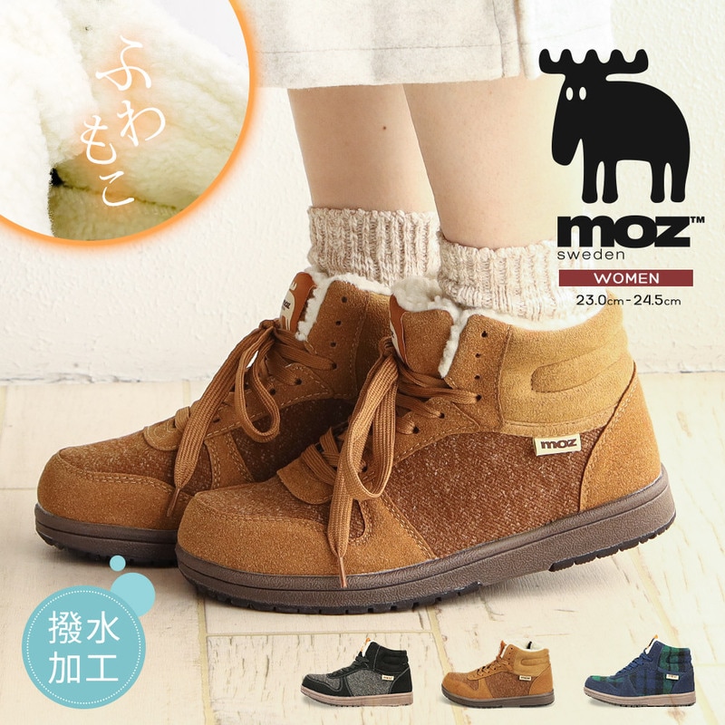 moz モズ スニーカー レディース ハイカット ボア 防寒 撥水 ファー 裏起毛 暖かい あったか ファスナー 靴 幅広 3e ...