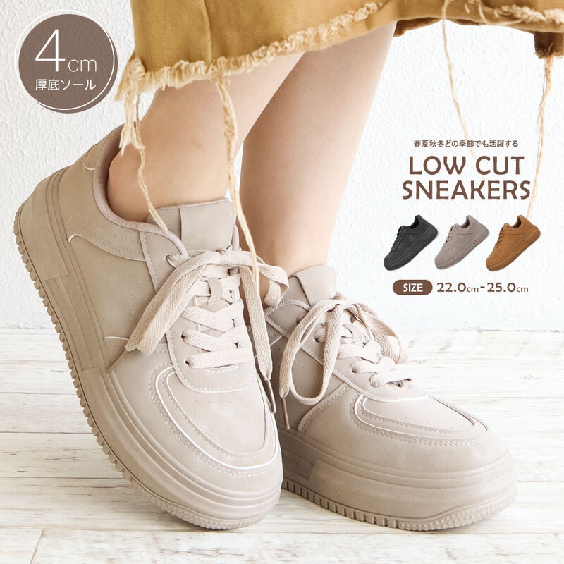 レディース スニーカー 厚底 ローカット 厚底スニーカー ジュニア シンプル 無地 おしゃれ カジュアル 紐靴 靴 グレー キャ...