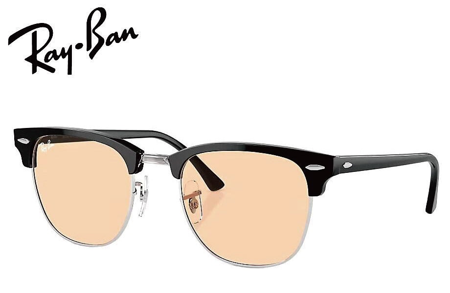 RAY-BAN CLUBMASTER WASHED LENSES RB3016 1354R5 51mm シルバー上にブラック/ライ...