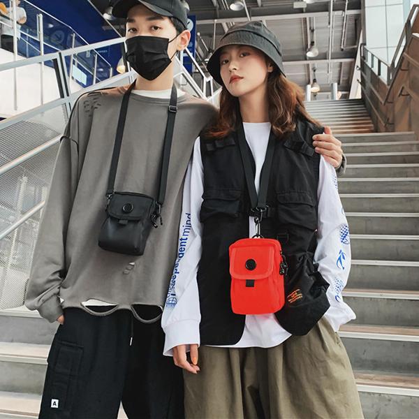 ストラップ付き ボディバッグ ワンショルダーバッグ 大きめサイズ バッグ 前掛け 後ろ掛け 斜め掛け ベーシック ストリート系 韓...