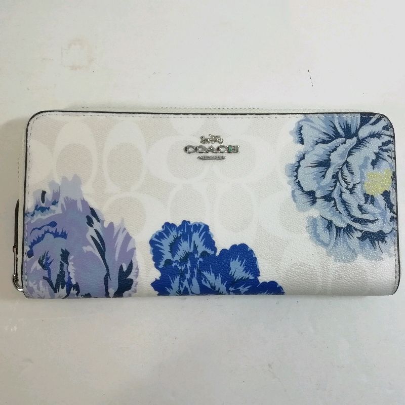 【中古】COACH長財布ホワイトシグネチャー×ブルーフローラルD1783-F6656