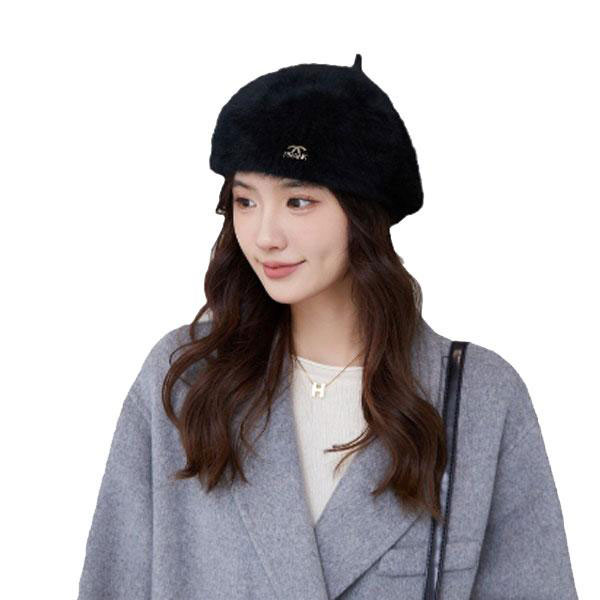 レディース ハット キャップ ニット ベレー帽 ラビットファー風 ワンポイント 可愛い 暖かい ふわふわ もこもこ 秋 冬 おしゃ...