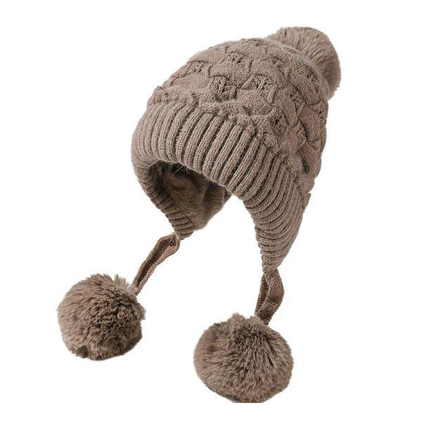 レディース ポンポン付き イヤーマフ付き ニットキャップ フリーサイズ 7カラー オシャレデザイン キャップ 耳あて付き 暖かい ...