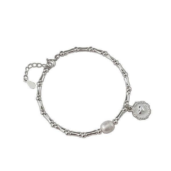 レディース ブレスレット パール調ビーズ ハートチャーム バンブー 竹モチーフ チェーン S925シルバー アクセサリー ブレスレ...