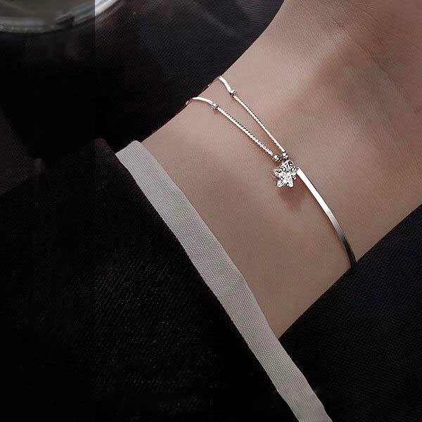 レディース シルバーブレスレット S925シルバー チェーン 星形 チャーム 細め アシンメトリー ハーフバングル アクセサリー ...