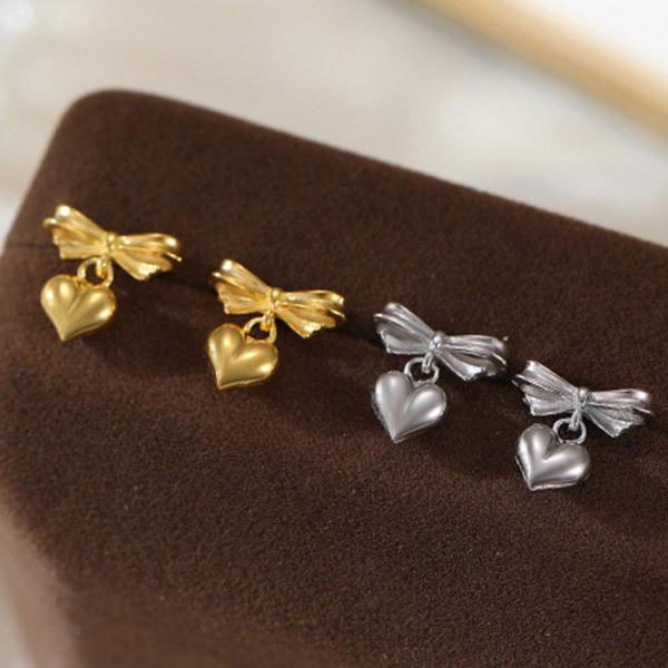 レディース ピアス ハート リボン モチーフ シルバー シルバー925 小ぶり 小さめ スタッドピアス かわいい おしゃれ アクセ...
