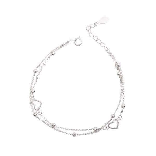 レディース シルバーブレスレット ハートモチーフ ビーズ チェーン S925シルバー 細め アクセサリー ブレスレット シンプル ...