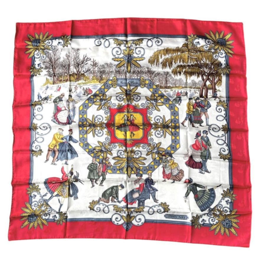 HERMES エルメス スカーフ カレ90 『Joies d’ Hiver(冬の愉しみ)』 シルク レッド ホワイト系