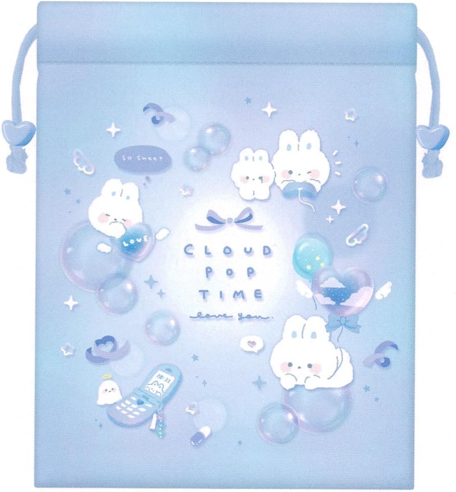 クーリア 巾着 女の子 向け ビーズ付き マチ付き 巾着 クラウドポップタイム ウサギ 入学新学期給食