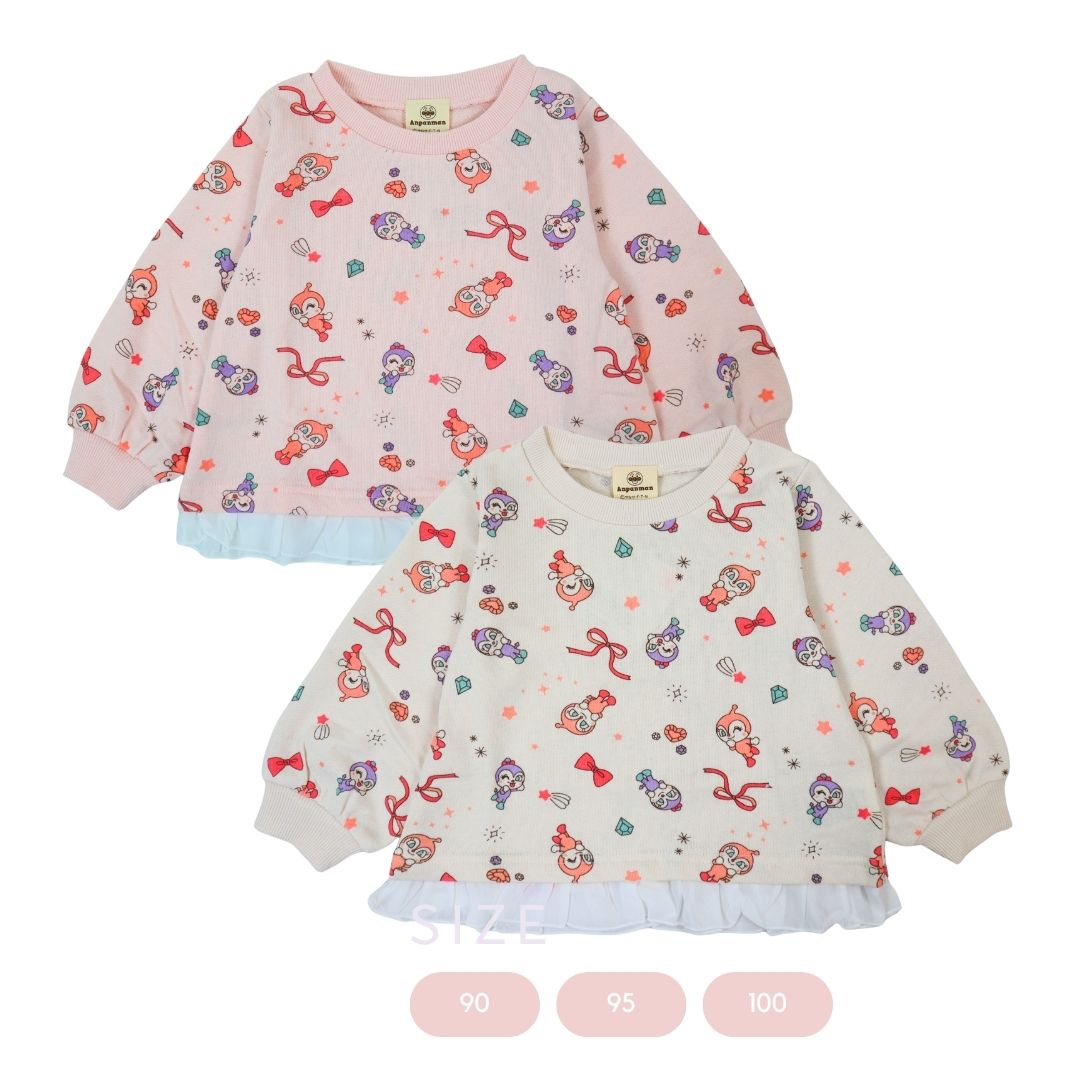 それいけ!アンパンマン ガール 長袖スウェットシャツ ドキンちゃん コキンちゃん 裾シフォンフリル 裏毛トレーナー EA3630