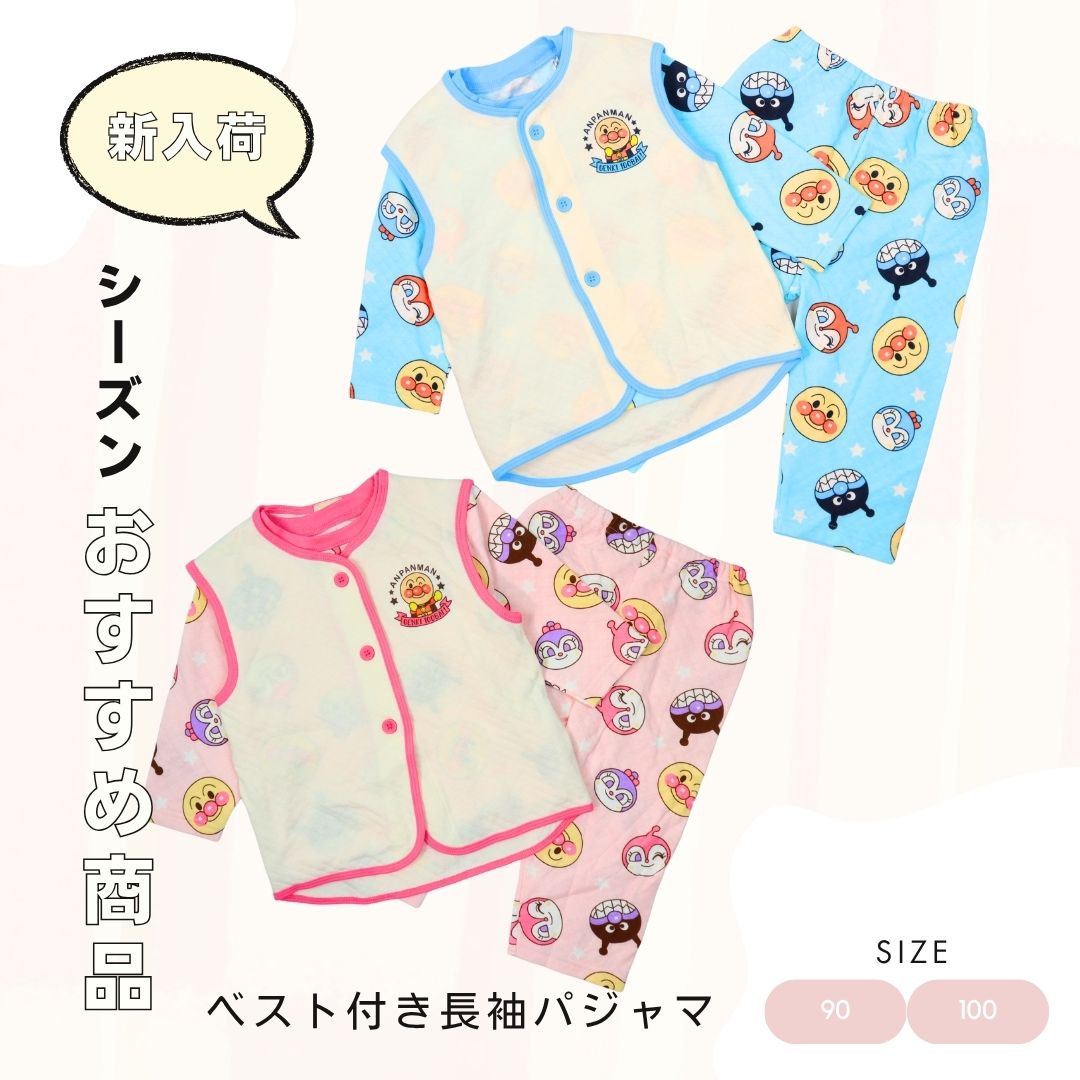 アンパンマン ベスト付き 長袖パジャマ セット ニットキルト あったか キッズ ベビー 子供服 90 100