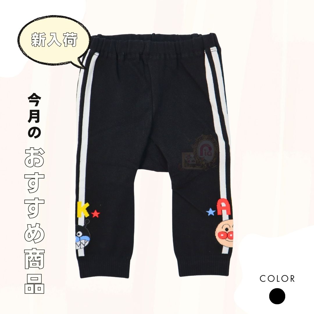 アンパンマン キッズ ニットパンツ ブラック 総柄 綿混 8分丈 ワイドマチ 伸縮性 90cm 95cm ベビー 子ども服