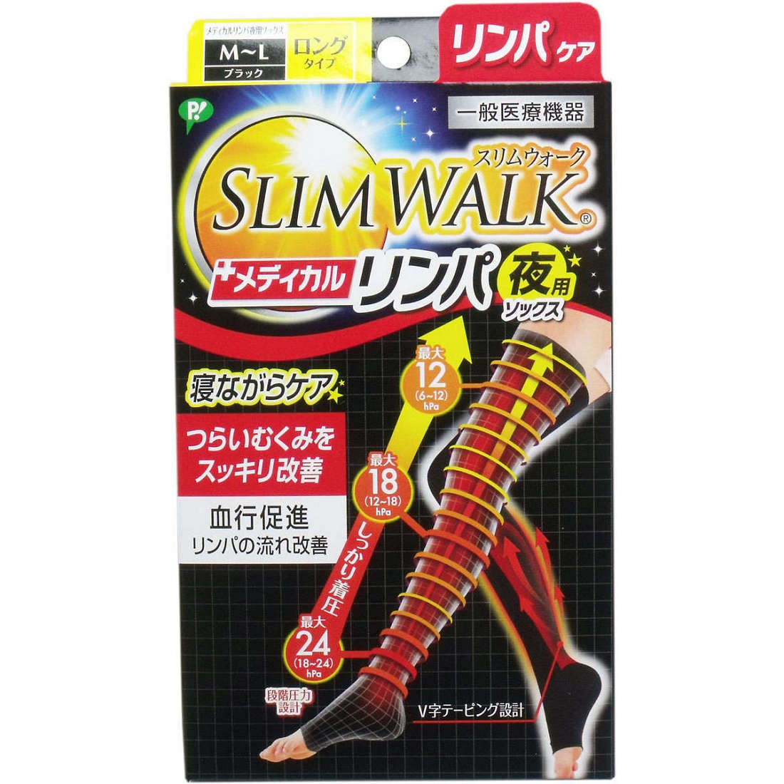 【着圧】【むくみ】 スリムウォーク メディカルリンパソックス夜用 ロングタイプ ブラック M-Lサイズ