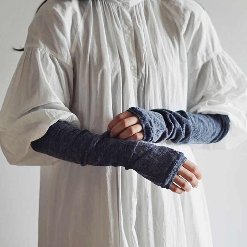 【日本製】リネン指先フリーアームカバー/ショート ニットウィン memeri 西口靴下