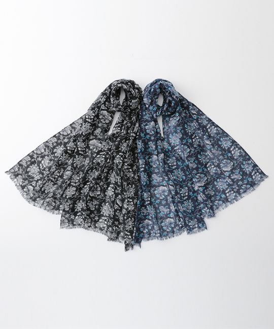 ウール100% フラワープリントショール