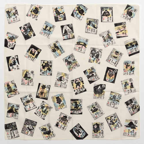 犬棒いろは ハンカチ (1844) 心の木版画・高橋幸子 58×58cm綿ハンカチ Cotton handkerchief