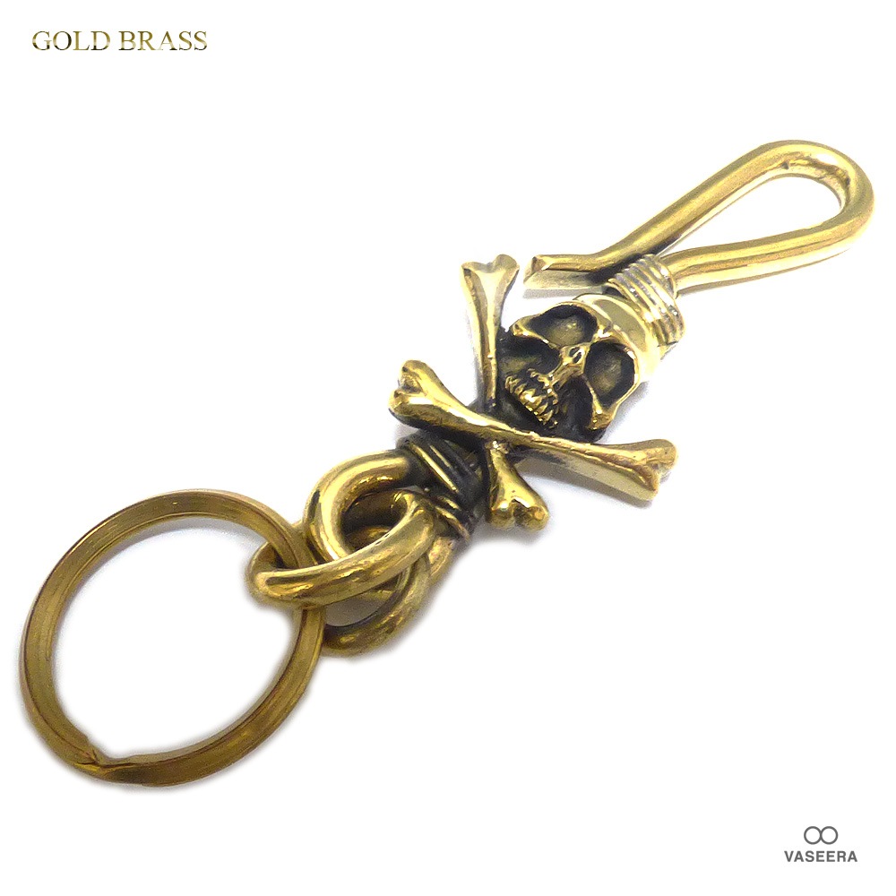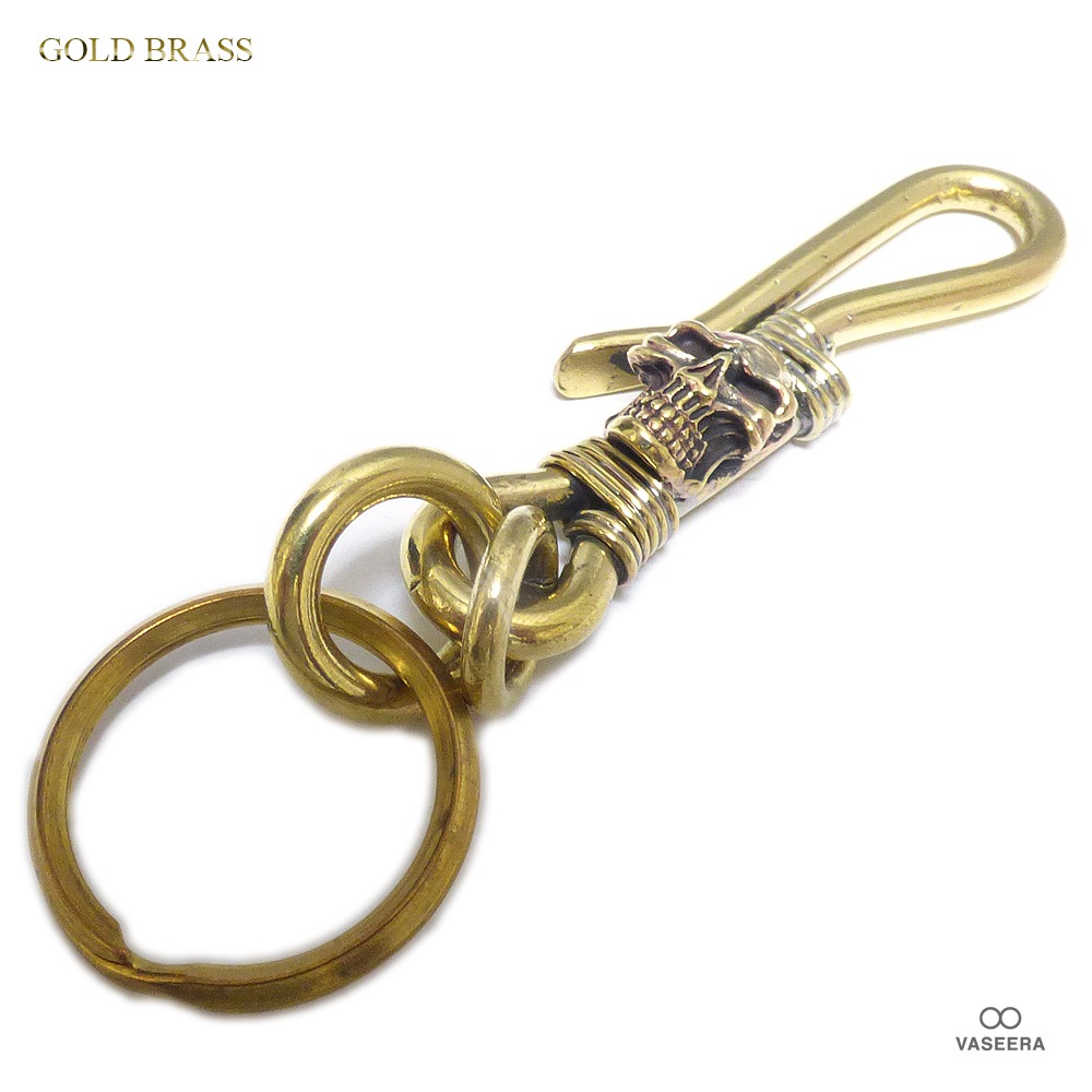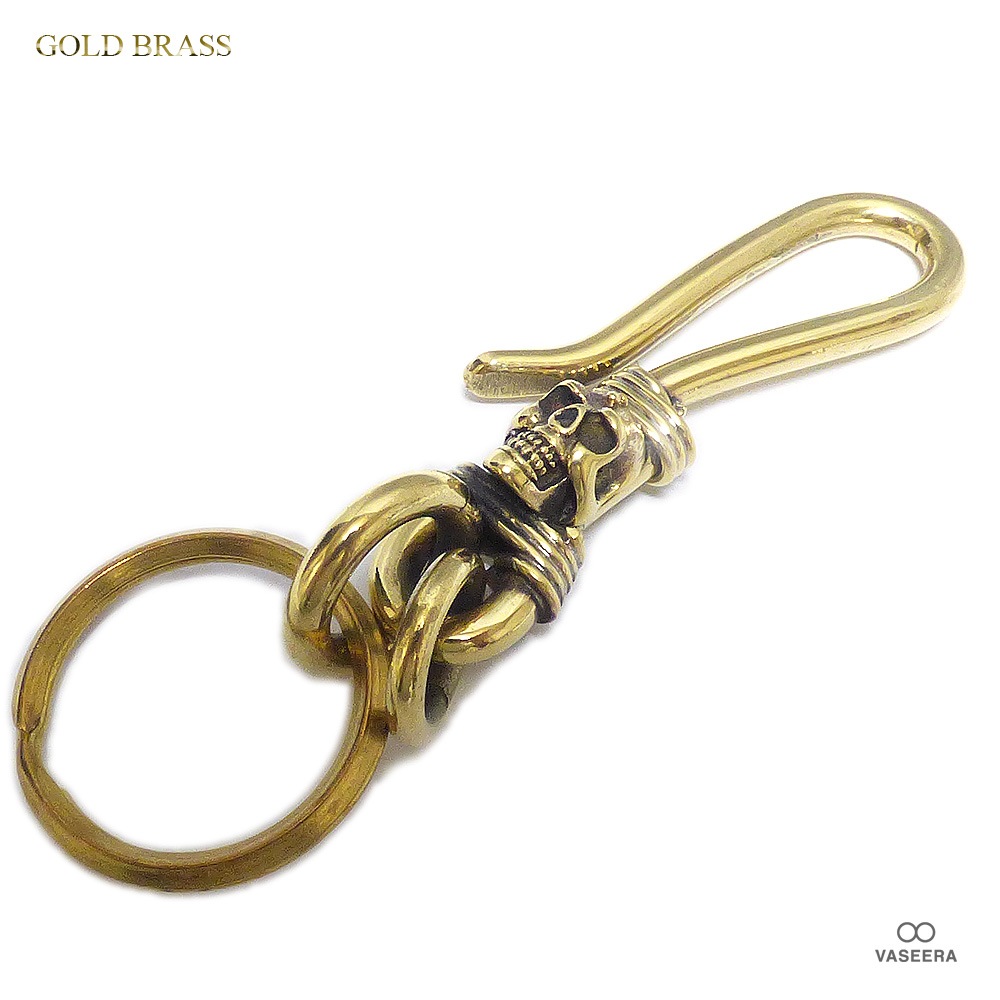 ゴールドブラス(真鍮) 83mmハードスカルデザイン 30mm二重カン付き ベルトフック キーホルダー 【キーリング 】
