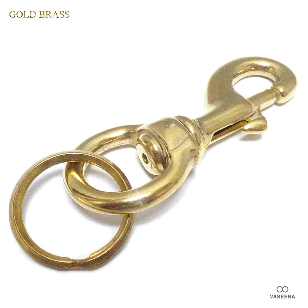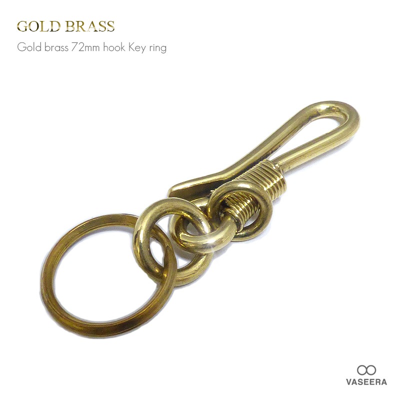 ゴールドブラス(真鍮) 72mm コイルベルトフック 二重リング(二重カン)付き キーホルダー(M) 【ブラス/キーリング 】