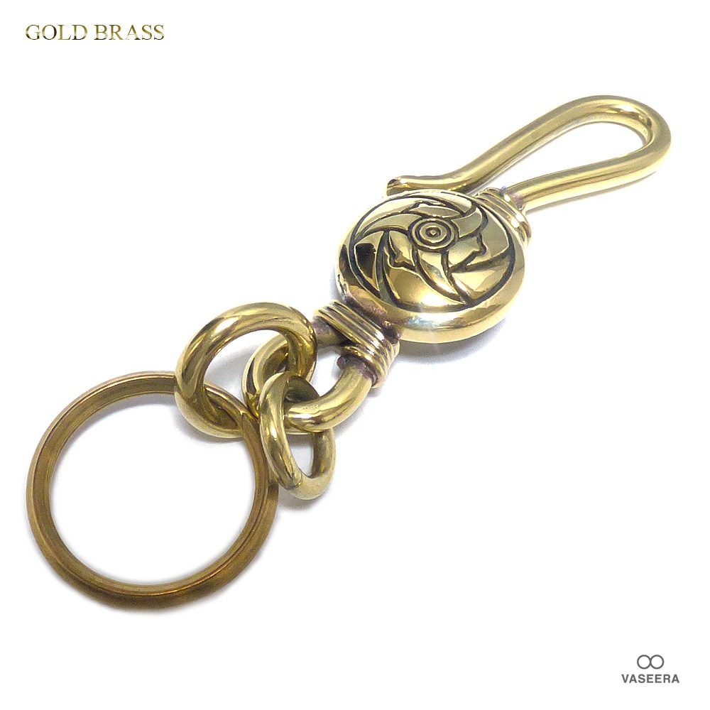 ゴールドブラス(真鍮) サンモチーフ幾何学デザイン 30mm二重カン付き ベルトフック キーホルダー 【キーリング 】