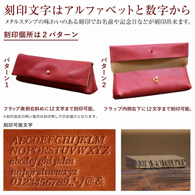 名入れ ヌメ革 ペンケース 筆箱 メガネケース シンプル 刻印付き メッセージ レザー 小物入れ 眼鏡ケース 薄手 柔らかい