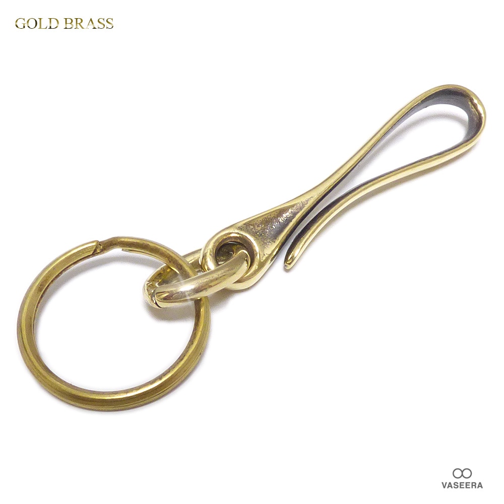 ゴールドブラス(真鍮) 80mm スタイリッシュ ベルトフック 二重リング(二重カン)付き キーホルダー 【キーリング 】