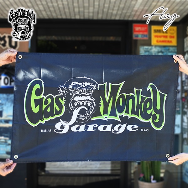 ガスモンキー バナー Sサイズ ロゴ フラッグ ブラック グリーン GAS MONKEY GARAGE 壁掛け インテリア 大判 ...