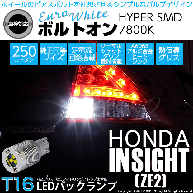 【即納】【メール便可】ホンダ インサイト[ZE1/ZE2]対応 バックランプ用LED LEDバルブ T16 ボルトオンHYPER...