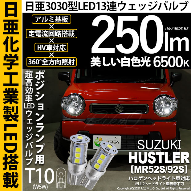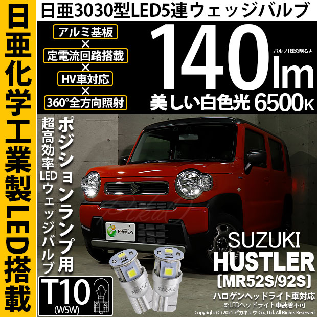 【即納】【メール便可】スズキ ハスラー[MR52S/MR92S]ハロゲンヘッドライト車対応 ポジションランプ用LED T10 日亜...