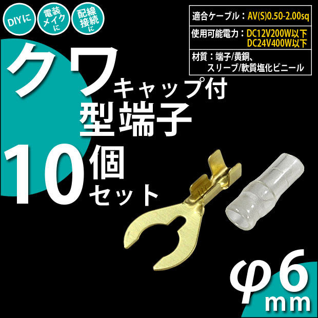 【即納】【メール便可】クワ型端子 6Φ(キャップ付き)10個セット